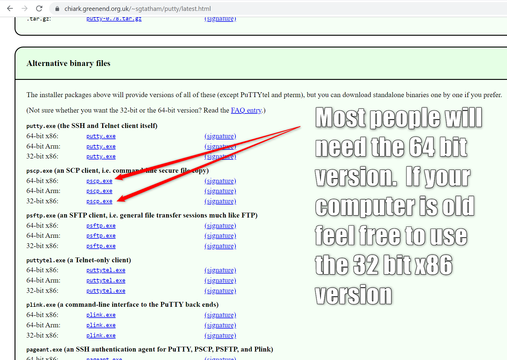 Although this title says through putty, it is actually done through a program called pscp which is written by the makers of Putty. On putty.org website click through to download putty which will then take you through to the screen which contains pscp. See the screenshots below.
